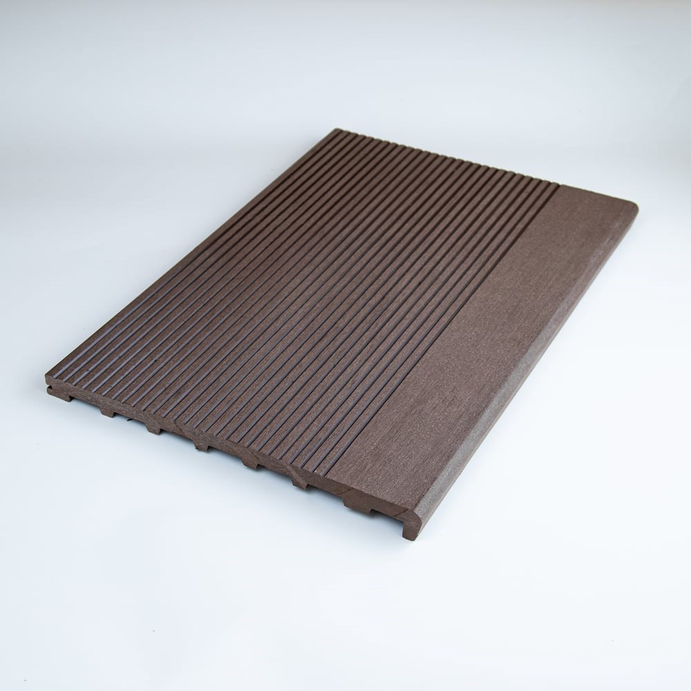 Ступень полнотелая Экодекинг Техно 4 м, цвет Шоколад 4687202238415 — полнотелая ступень на основе ПНД для применения в объектах со средней и большой проходимостью. На основной поверхности доска имеет мелкий вельвет и брашировку. Полнотелая ступень не имеет ячеистой структуры и поэтому подходит для мест с высокой влажностью таких как бассейны, пирсы, причалы и подобные. Толщина ступени 22 мм, что позволяет доске выдерживать большие пешеходные нагрузки и большое количество влаги На основной стороне мелкий вельвет который не дает влаге скапливаться Вес 1 м.п. доски — 7,9 кг, что говорит о плотности и качестве смеси Состав: 68% — древесная мука (первичное сырье — не переработанное); 26% — ПНД; 6% — красящие и и функциональные добавки высокой светостойкости, обеспечивающие долговечность продукции. Декинг из древесно-полимерного композита ECODECKING производится в России с 2011 года. На все физико-химические свойства ступеней предоставляется гарантия производителя — 2 года. При этом, срок ее эксплуатации без дополнительной обработки при правильной эксплуатации составляет 25 лет! Вся продукция сертифицирована