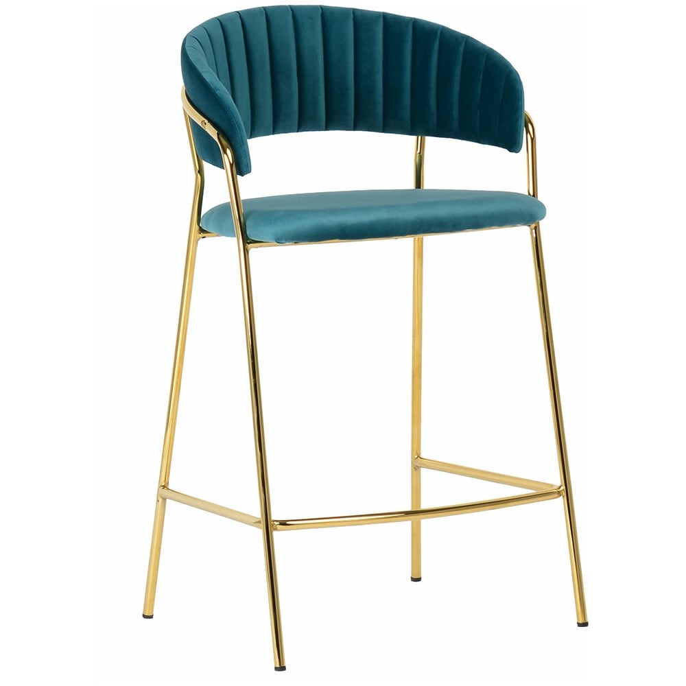 Полубарный стул BRADEX Turin бирюзовый FR 0162 станет эстетичным дополнением дома, офиса, кафе или номера. Благодаря высокой прочности прослужит долгое время. В меру упругое сиденье обеспечивает комфорт при посадке. Стул имеет устойчивую конструкцию, поэтому защищен от случайного падения. Дополнительные технические характеристики: Длина, см: 60. Ширина, см: 52. Глубина, см: 52. Высота, см: 92. Высота сиденья, см: 65. Материал (опоры, ножки): металл. Цвет ножек: золотой.