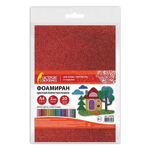 Цветная пористая резина с глиттером ОСТРОВ СОКРОВИЩ – блестящий материал для воплощения творческих идей!