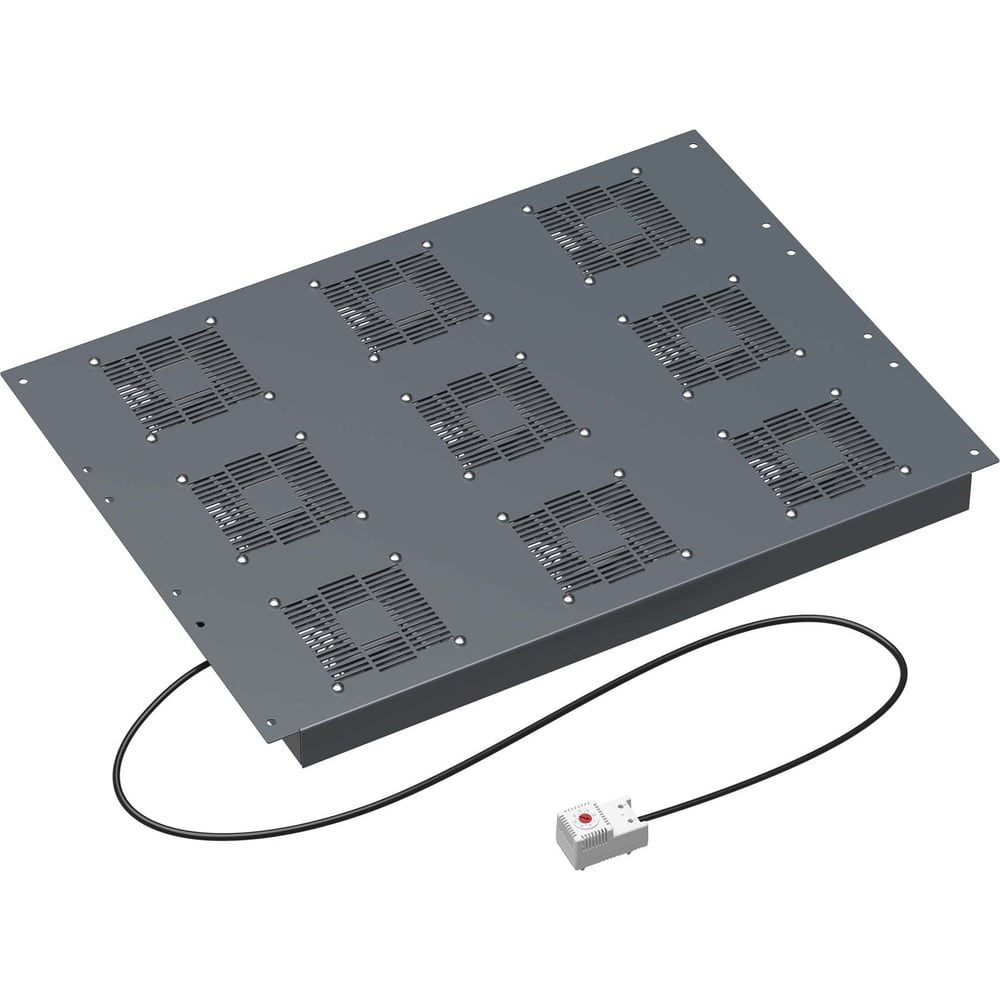 Потолочный модуль 9 вентиляторов с термостатом для крыши напольных 19" it-корпусов дкс серии cqe шириной 800мм, ral7011 DKC R5VSIT8009FT применяется для организации отвода нагретого воздуха из объема IT-корпуса вверх. Блок вентиляторов поставляются с термостатом. Термостат включает блок при достижении воздухом верхнего порогового значения температуры и отключает вентиляторы при охлаждении воздуха до нижнего порога температуры. Модуль предназначен для установки в шкафы шириной 800 мм.