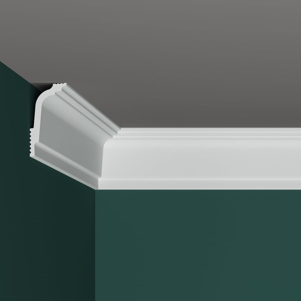 Потолочный плинтус или, как принято его называть в архитектуре, карниз – это наиболее популярный элемент лепного декора, который используют для декорирования стен и потолков.Основным функциональным назначением потолочного плинтуса является скрытие стыка между потолком и стеной, создавая плавный и красивый переход между ними. В зависимости от размера плинтус визуально может как увеличить, так и уменьшить высоту потолков.Ассортимент потолочных карнизов ПРАЙМДЕКОР насчитывает более 50 видов профилей разного дизайна и размера от классических до современных форм, что позволяет подобрать плинтус под любой стиль отделки помещения.Монтаж потолочных карнизов ПРАЙМДЕКОР очень прост и не требует дополнительных навыков, его можно красить любыми интерьерными красками, не содержащими растворитель, шпаклевать и тонировать, придавая ему новый образ.Потолочные плинтуса ПРАЙМДЕКОР изготавливаются методом экструзионного вспенивания полистирола общего назначения. Гранулы полимера добавляются в экструдер вместе со специальными добавками и вспенивающим агентом (газ CO2), где они расплавляются и вспениваются, образуя единую гомогенную массу.