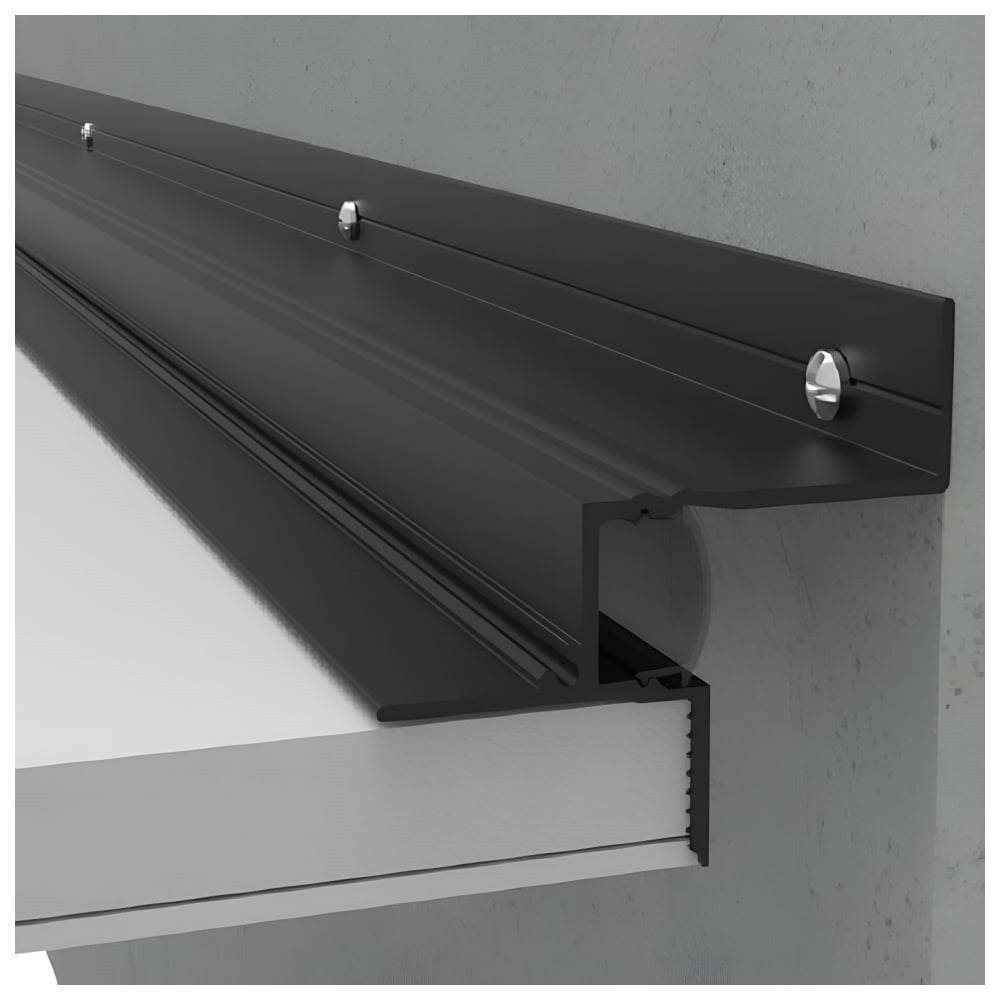 Плинтус потолочный для подсветки изготовлен из анодированного алюминиевого сплава и имеет черное матовое покрытие. Благодаря улучшенным характеристикам плинтуса, монтаж будет несложным, а результат превысит ваши ожидания. Специальный технологический зазор в плинтусе позволяет без труда стыковать два профиля между собой с помощью финишного гвоздя. Саморезы и финишные гвозди приобретаются отдельно.