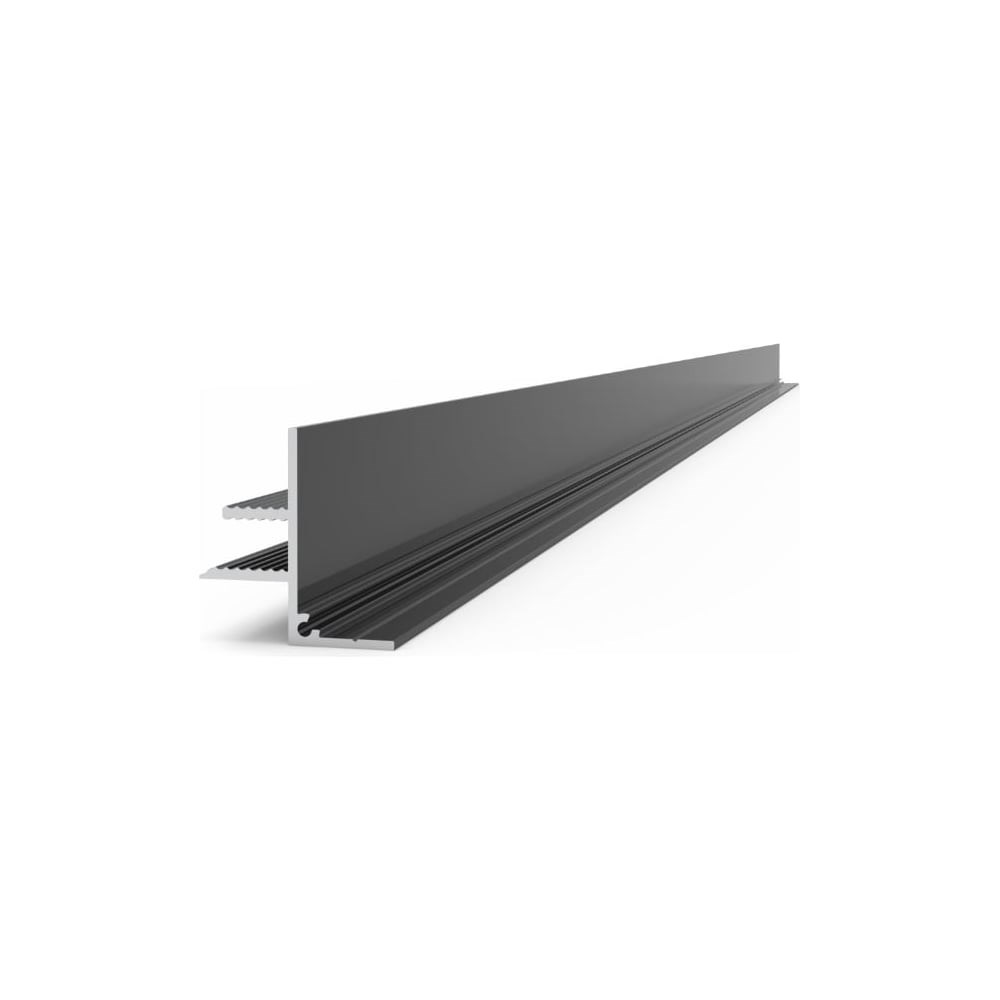Плинтус потолочный под гипсокартон 12 мм изготовлен из анодированного алюминиевого сплава и имеет черное матовое покрытие. Благодаря улучшенным характеристикам плинтуса, монтаж будет несложным, а результат превысит ваши ожидания. На основании плинтуса предусмотрены насечки для крепления его стене с помощью саморезов. Две рифленые планки под основанием плинтуса обеспечивают лучшее сцепление с гипсокартоном и шпаклевкой, что исключает дальнейшее появление трещин на потолке. Специальный технологический зазор в плинтусе позволяет без труда стыковать два профиля между собой с помощью финишного гвоздя. Саморезы и финишные гвозди приобретаются отдельно.