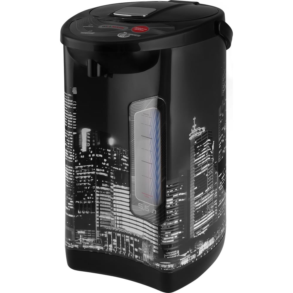 Термопот WILLMARK WAP-603IS с объемом 5,5 л сочетает в себе функции электрочайника и термоса, подходит для домашнего и офисного использования. Выполнен в корпусе из металла и термостойкого пластика с рисунком в виде ночного мегаполиса. Внутренний резервуар изготовлен из нержавеющей стали, поэтому устойчив к повреждениям и появлению коррозии. Термопот предлагает 2 способа подачи воды: автоматический и касанием рычага, находящегося под носиком прибора. Предусмотрены режимы: кипячение, поддержание температуры и повторное кипячение. На передней панели установлена стильная шкала с минимальными и максимальными обозначениями уровня воды в приборе. Для удобного перемещения в верхней части расположена ручка. Функция блокировки от включения без воды повышает безопасность использования термопота.