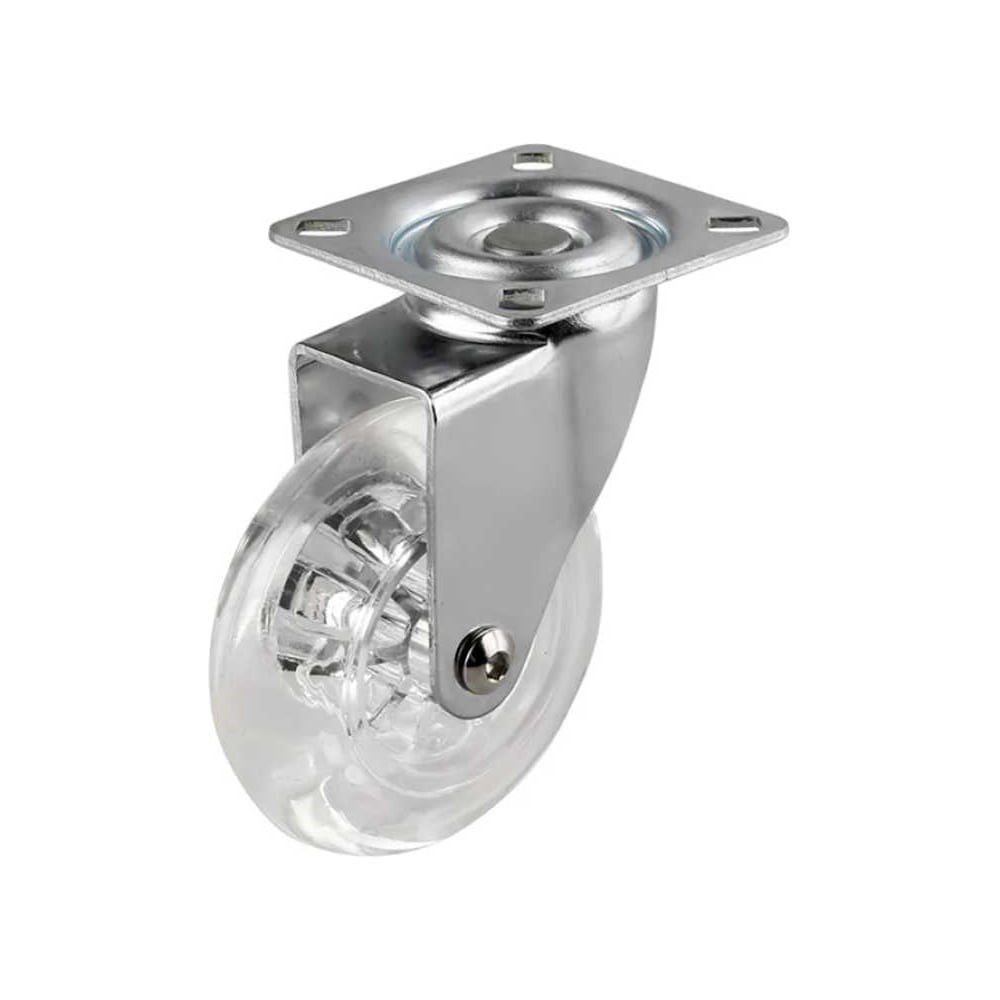 Тип - поворотное на площадке. Диаметр - 75 мм. Материал - прозрачный полиуретан (PU). В основании площадки -шарикоподшипник. В колесе подшипника нет. Нагрузка до 35кг. Колесико мебельной серии с диаметром 75 мм предназначается для установки в качестве подвижной опоры на мебель. Удобное и надежное крепление на пластину с отверстиями под крепежные элементы выдерживает нагрузку до 35 кг для универсального применения на самых разнообразных покрытиях. Особенности: подойдет для использования на поверхностях с незначительными неровностями и мягких покрытиях. Без защиты от случайного передвижения с поворотным механизмом. Мебельные колеса и ролики представляют собой опоры, которые позволяют перемещать мебель в пределах помещения. Колеса для мебели делают уборку более удобной, не повреждают половое покрытие и не оставляют на нем следов. Наиболее распространены ролики для шкафов-купе, столов, кресел и диванов, стеллажей, тумбочек и т. д.