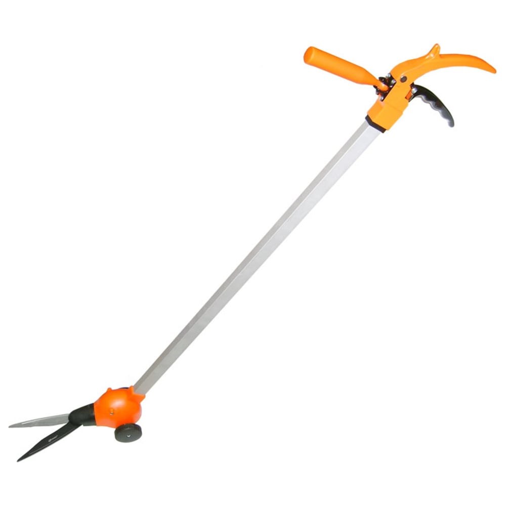 Ножницы-каталка для травы SKRAB 1,2м поворотные 360 HCS 28056 безупречно подойдут для проведения работ по озеленению пространства рядом с загородным домом или дачей. Представленная модель имеет штангу 1200 мм с возможностью поворота рабочего механизма на 360 градусов. Благодаря такой продуманной конструкции, не придётся нагибаться во время работы этими ножницами. Можно заниматься цветоводством, стричь газон и окультуривать кустарники. Режущие лезвия производитель выполнил из углеродистой стали высокого качества. Они прочные и износостойкие. Верхнее лезвие имеет тефлоновое покрытие для уменьшения трения и налипания остатков травы. Конструкция режущего механизма ножниц такова, что он может вращаться вокруг своей оси на 360 градусов. Причём, предусмотрена его фиксация в двенадцати различных положениях через 30 градусов поворота. Обратите внимание, что есть блокирующий фиксатор, не позволяющий неожиданно раскрываться ножницам. Отдельно стоит отметить оранжевые рукоятки из пластика. Их стоит похвалить за эргономичную конструкцию. Работать дополнительной рукояткой можно обеими руками. Это очень удобно. Все эти преимущества позволяют рекомендовать эти ножницы всем огородникам и садоводам, занятым на своём приусадебном хозяйстве.
