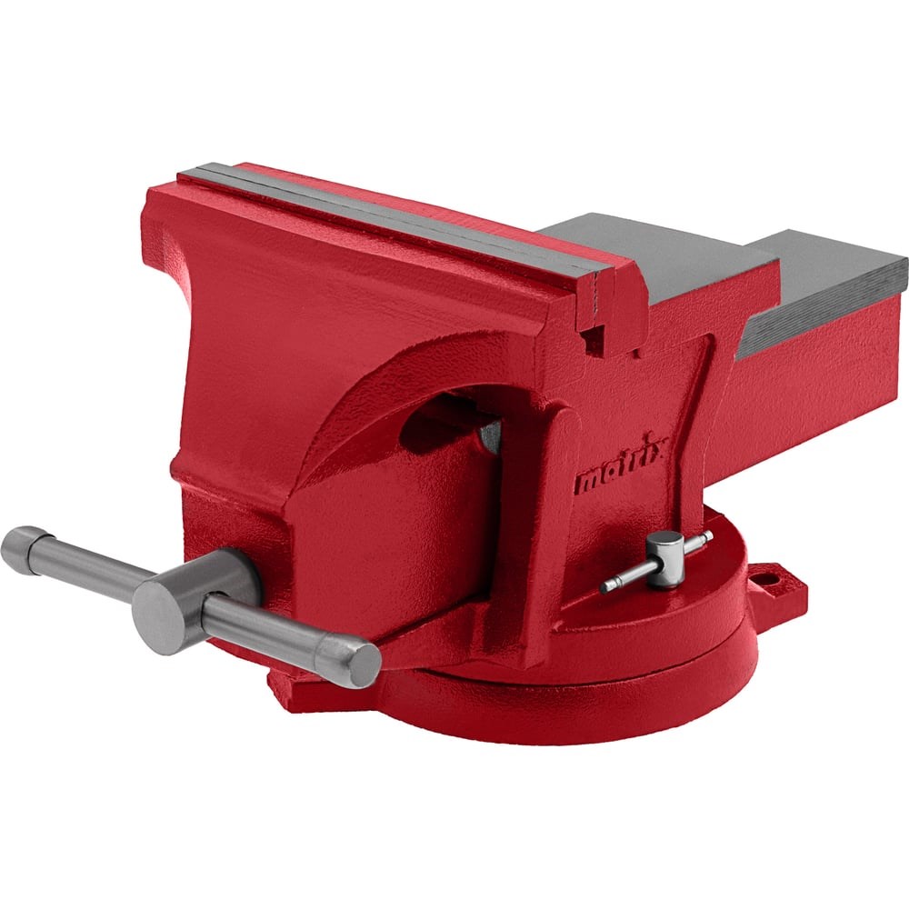 Поворотные слесарные тиски с губками шириной 200 мм имеют рабочий ход 175 мм и предназначены для захвата и фиксации различных деталей. Поворотный механизм с прижимными винтами позволяет вращать тиски на 360° и фиксировать их в выбранном положении для удобной обработки заготовок с разных сторон. Инструмент используется для шлифовки, сверления и проведения других работ. Будет полезен в мастерской и гараже.