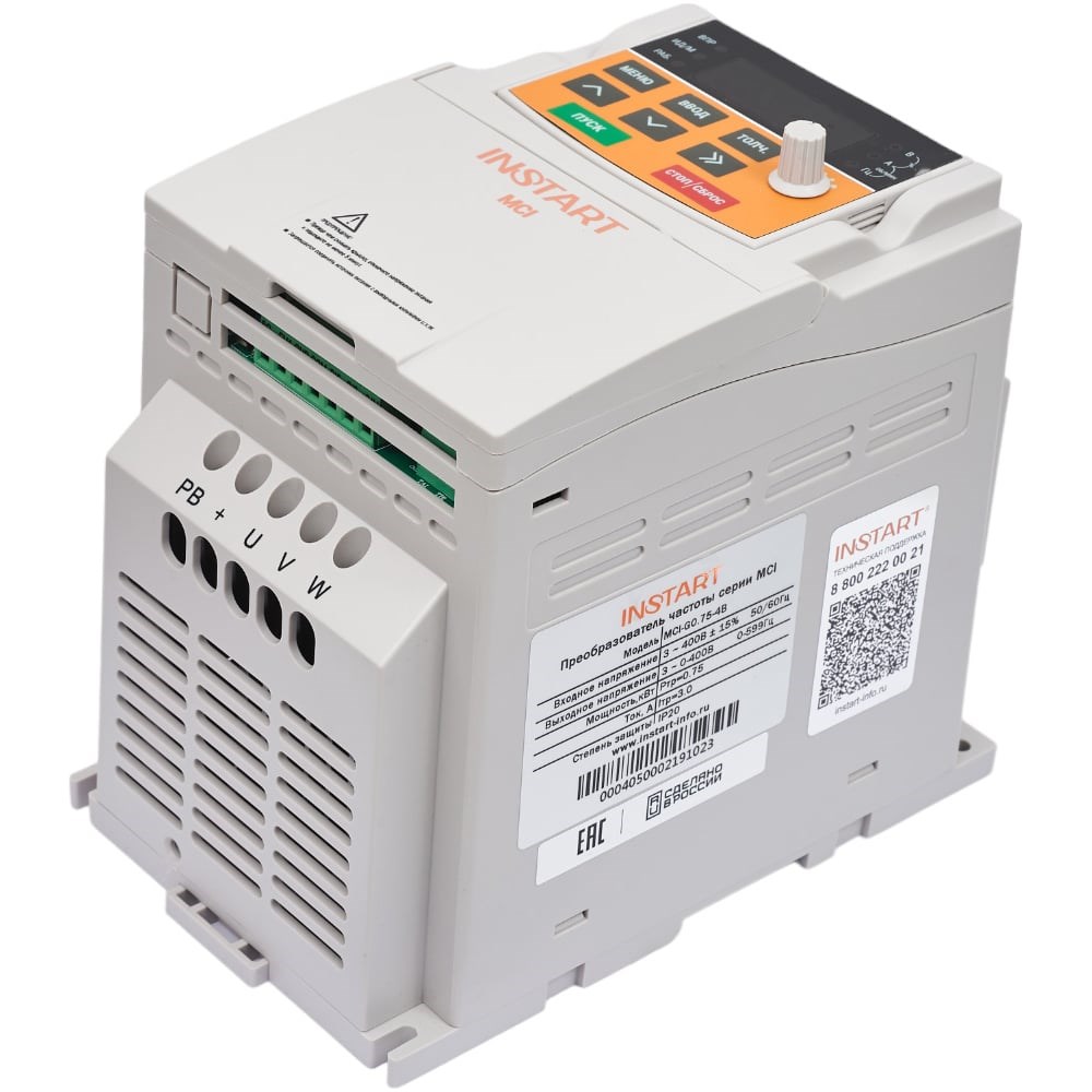 Преобразователь частоты INSTART серии МCI - специально разработан для большого количества стандартных применений. Преобразователь частоты серии MCI предназначен для управления трехфазными асинхронными электродвигателями. Преобразователи частоты серии MCI используют там, где не требуется векторное управление с замкнутым контуром (наличие энкодера): вентиляторы, насосы, дробилки, компрессоры, штамповочные станки, гравировальные станки, оборудование для обработки стекла, печатные станки, ткацкое оборудование и т.д.