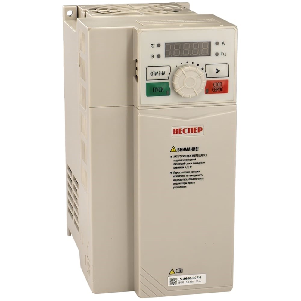 Cерия Е5-8600 подходит для большинства общепромышленных применений для нагрузкам как с переменным, так и с постоянным моментом, что делает ее наиболее привлекательной по соотношению цена/функционал. Серия Е5-8600 имеет расширенный функционал и современный дизайн со съемной панелью управления на русском языке с цифровым потенциометром для задания частоты. Преобразователи серии Е5-8600 в векторном режиме работы (SVC) отличаются высоким пусковым моментом (150%/0,25 Гц), широким диапазоном регулирования и точностью поддержания скорости ±0,2%. Преобразователи серии Е5-8600 имеют ПИД-регулятор с индикацией реальной физической величины, встроенный сетевой протокол MODBUS (интерфейс RS-485) и встроенный фильтр ЭМС. Эффективная система охлаждения позволяет работать при температуре окружающей среды до +50°C.