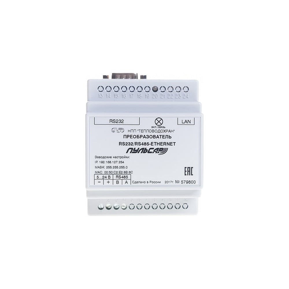 Преобразователь RS232/RS485-Ethernet ПУЛЬСАР 1 порт RS 485; 1 порт RS 232 Н00002738 предназначен для организации удаленных каналов связи с приборами, имеющими RS-232 и(или) RS-485 интерфейсы посредством локальных вычислительных сетей (ЛВС) Ethernet. Прибор может быть использован в системах автоматического сбора данных и управления различным промышленным оборудованием.