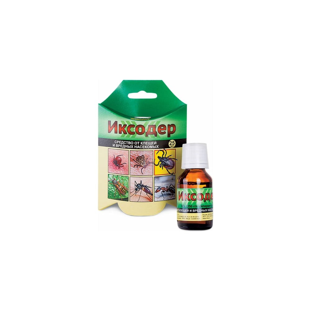 Препарат для обработки территории от клещей Ваше Хозяйство Иксодер 25 мл 4620015698137 применяется против клещей, ос, шершней и муравьев. Уничтожает клещей разных видов — ixodes, dermacentor и др., действует быстро — через 30 минут после обработки. Обработку проводят путем опрыскивания или с помощью генератора аэрозольного тумана.