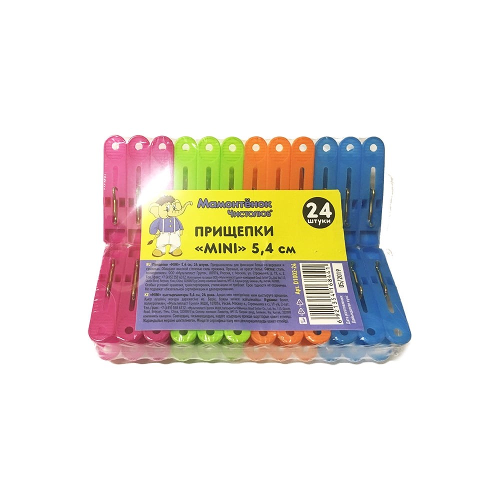 Прищепки Мамонтенок Чистолюб MINI 5.4см набор 24шт D1002-24