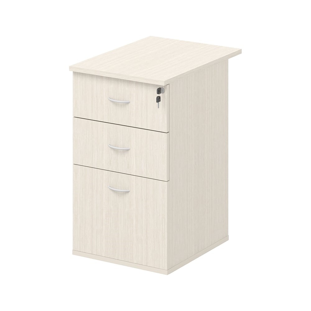 Приставная тумба ФЕЛИКС 42.9x60x75.3 см дуб альпийский ПК-ЛОГ-ТМП43x60ЦЗ/25-В1-30 увеличивает полезную площадь стола, создает удобное хранение документов, офисных принадлежностей, личных вещей сотрудника. Тумба имеет 3 ящика. Ящики устанавливаются на роликовые направляющие. Все ящики запираются центральным замком. Верхняя полка изготавливается из ЛДСП 25 мм и покрыта кромкой ПВХ 2 мм. Все другие детали изготавливаются из ЛДСП 16 мм и покрыты кромкой ПВХ 0,45 мм. Каркасы ящиков состоят из фолдингов, передних панелей и дна изготовленного из древесноволокнистой плиты (ДВП) толщиной 3,2 мм. Ручки - пластиковые скобы (межцентровое расстояние 96 мм). Опоры приставной тумбы регулируемые - для установки с учетом неровностей пола.