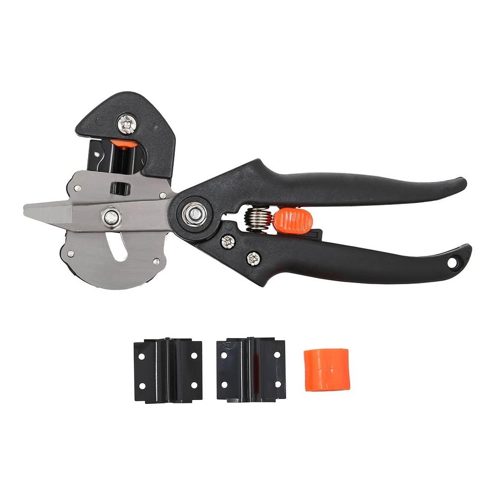 Прививочный секатор Green Helper GT-001 оснащен лезвиями формы U, V и Ω. Специальное приспособление позволяет зажать ветку и сделать срез под нужным углом. Благодаря изогнутым рукояткам гораздо проще работать с инструментом.