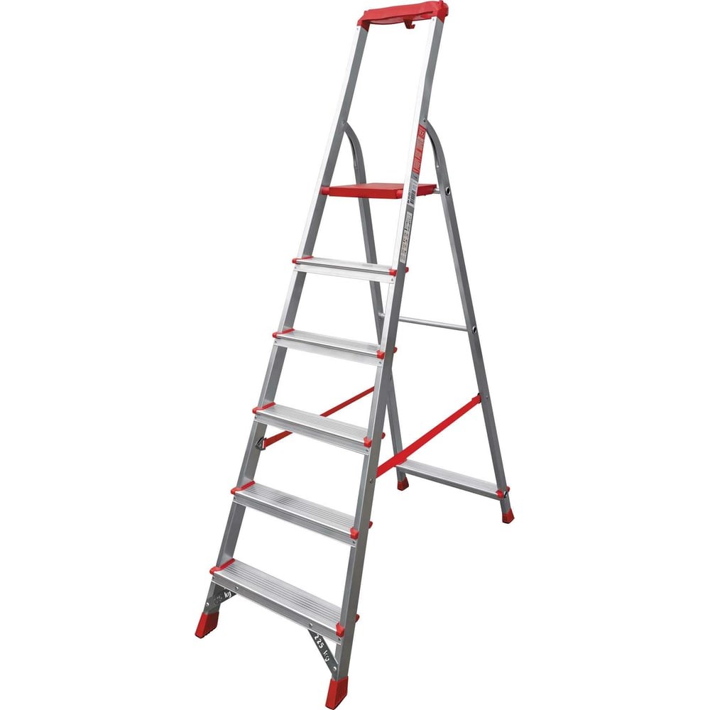 Профессиональная стремянка Новая Высота NV3115, 1x6 ступеней 80 мм, органайзер 3115106 предназначена для интенсивного использования. Удобство в процессе работы. Цельнотянутая усиленная оцинкованная стальная площадка 255х255 мм с порошковой окраской позволяет удобно ставить необходимый инвентарь. Надежность конструкции. Заклёпочное крепление ступеней обеспечивает высокую статическую и динамическую прочность. Страховочные погодоустойчивые ремни со вшитыми стальными крепёжными петлями не гниют и не выгорают. Распорки-стабилизаторы под нижней ступенью создают жёсткую рамную конструкцию. Безопасность. Башмаки из 2х-компонентного пластика с прорезиненной опорой обеспечивают большое (15 см²) пятно контакта, они не скользят и не повреждают поверхность. Упор площадки из прутка с фиксатором, не выходит из пазов при сборке, а также исключает повреждение пальцев. Пластиковые повторяющие рельеф заглушки ступеней с длительным сроком службы скрывают острые грани и углы.