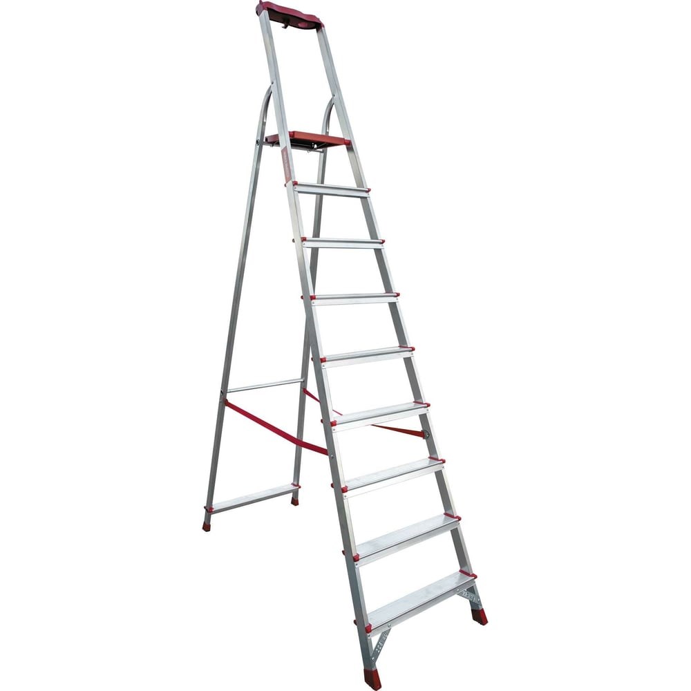 Профессиональная стремянка Новая Высота NV3115, 1x9 ступеней 80 мм, органайзер 3115109 предназначена для интенсивного использования. Удобство в процессе работы. Цельнотянутая усиленная оцинкованная стальная площадка 255х255 мм с порошковой окраской позволяет удобно ставить необходимый инвентарь. Надежность конструкции. Заклёпочное крепление ступеней обеспечивает высокую статическую и динамическую прочность. Страховочные погодоустойчивые ремни со вшитыми стальными крепёжными петлями не гниют и не выгорают. Распорки-стабилизаторы под нижней ступенью создают жёсткую рамную конструкцию. Безопасность. Башмаки из 2х-компонентного пластика с прорезиненной опорой обеспечивают большое (15 см²) пятно контакта, они не скользят и не повреждают поверхность. Упор площадки из прутка с фиксатором, не выходит из пазов при сборке, а также исключает повреждение пальцев. Пластиковые повторяющие рельеф заглушки ступеней с длительным сроком службы скрывают острые грани и углы.