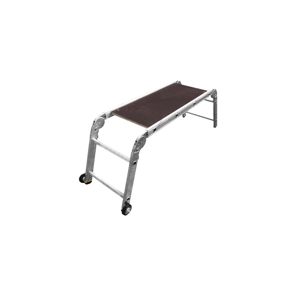 Рабочие подмости алюминиевые профессиональные- представляют собой свободностоящую переносную платформу, состоящую из трех секций, соединенных между собой стальными шарнирами с тремя углами фиксации, что в свою очередь обеспечивает три положения:-приставная лестница, - приставная лестница под крышу, - подмости.Профиль подмостей изготовлен из высокопрочного алюминиевого сплава (ГОСТ 22233-2018), что обеспечивает прочность и долговечность при минимальном весе. Ступени имеют рифленую противоскользящую поверхность, что способствует безопасному подъёму и спуску.Настил (съёмный) выполнен из нескользящей ламинированной влагостойкой фанеры, надежно прикрепленной к профилю.Подмости укомплектованы колесами для более комфортногоПодмости - незаменимый помощник во время стройки или ремонта.Предельно допустимая нагрузка – 150 кг. Подобные конструкции необходимы как для дома, так и для промышленных малярных или штукатурных работ.Размер рабочей площадки: 0,90х0,46Завод – изготовитель оставляет за собой право в одностороннем порядке вносить изменения в конструкцию, в целях улучшения технических характеристик.на линейные размеры отклонение может составлять +-5 мм, на вес изделия +-5%