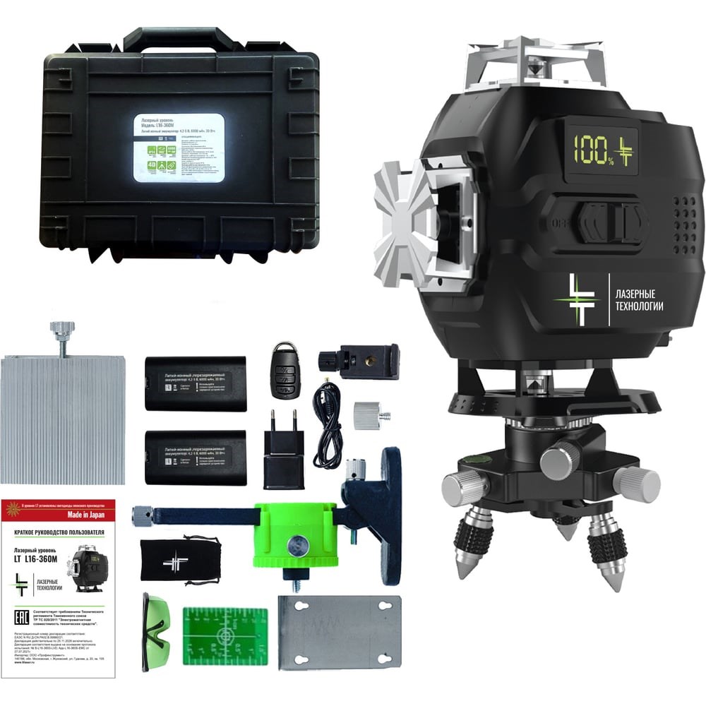 Профессиональный лазерный уровень LT L16-360M выстраивает 4 плоскости в 360 градусов (в круговую): 2 вертикальные плоскости 360 градусов с пересечением под прямым углом 90 градусов, 2 горизонтальные линии 360 градусов снизу и сверху уровня. Нижний горизонт идеально подходит для работ по заливке полов и стяжке. Особенности: до 8 часов работы при постоянном свечение луча лучи включаются как с сенсорных кнопок на корпусе устройства, так и с пульта дистанционного управления зеленый цвет луча лучше виден на свету и менее вреден для глаз при помощи приемника (отражателя) лазерных лучей (приобретается отдельно) можно работать в солнечную погоду противоударный и влагозащитный кейс для переноски устройства Все уровни проходят трехступенчатый контроль проверки качества сборки на заводе-производителе и инспекционный контроль приемки товара. Калибровка устройств производится на заводе с помощью специального оборудования, сертифицированного по международным стандартам и только специалистами самого высокого уровня допуска.