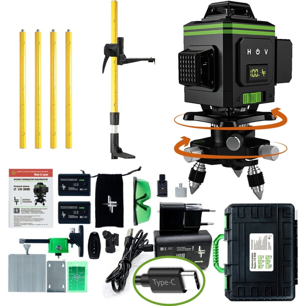 Профессиональный лазерный уровень LT L16-360В + штатив 3.6 м L16-360В/3.6м с двумя вертикальными и двумя горизонтальными лучами в 360. Нижний горизонт идеально подходит для работ по заливки полов и стяжки. Особенности: до 8 часов работы при постоянном свечение луча лучи включаются как с сенсорных кнопок на корпусе устройства, так и с пульта дистанционного управления зеленый цвет луча лучше виден на свету и менее вреден для глаз дальность до 50 метров (в зависимости от освещения) при помощи приемника (отражателя) лазерных лучей (приобретается отдельно) можно работать в солнечную погоду противоударный и влагозащитный кейс для переноски Уровень проходит трехступенчатый контроль проверки качества сборки на заводе-производителе и инспекционный контроль приемки товара. Калибровка устройств производится на заводе с помощью специального оборудования, сертифицированного по международным стандартам и только специалистами самого высокого уровня допуска. Модель работает от Li-ion батареи.