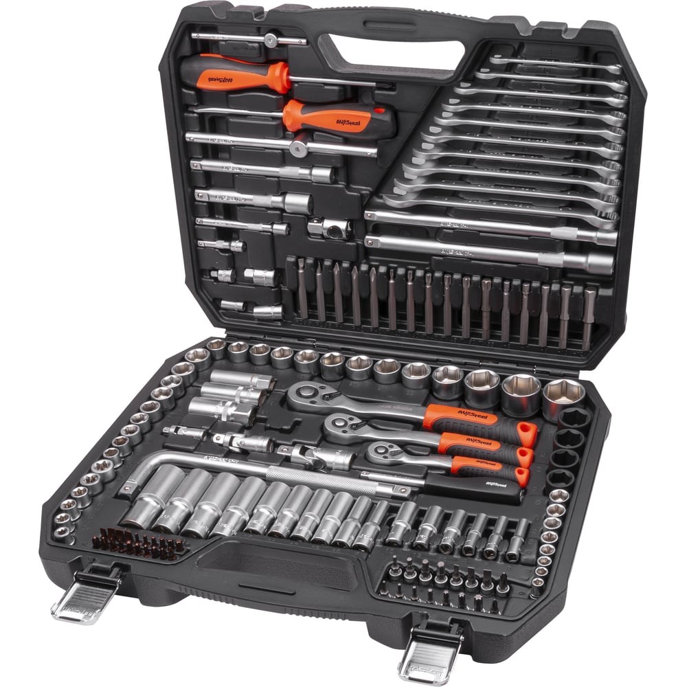 AV Steel AV-011144 — профессиональный набор инструментов 144 предмета для комплексного ремонтаПолный комплект для профессионалов:3 типа приводов (1/4", 3/8", 1/2") с полным размерным рядом головок от 6 до 32 ммСпециализированные головки: удлиненные, свечные (14/16/21 мм), E-типа, ударныеПолный набор бит: TORX (до T55), HEX (до H12), SLOTTED, PHILLIPS, POZIDRIV, ROBERTSONПрофессиональные трещотки 72 зуба для каждого типа приводаУникальные особенности: ✔ Двойной комплект бит (в держателе 5/16" и стандартные 1/4") ✔ Спецоснастка: адаптеры, карданы, удлинители разных размеров ✔ Дополнительные инструменты: комбинированные ключи, отверткиПреимущества для мастеров:Полное покрытие размеров для авторемонта и строительстваИзносостойкие материалы (хром-ванадиевая сталь)Удобные трещотки с мелким шагом (5° угол поворота)Головки с защитным покрытиемКомплектация включает:46 головок разных типов и размеров42 биты всех распространенных стандартов12 адаптеров и переходников6 удлинителей разной длины3 трещотки профессионального классаИнструменты общего назначенияИдеально для: