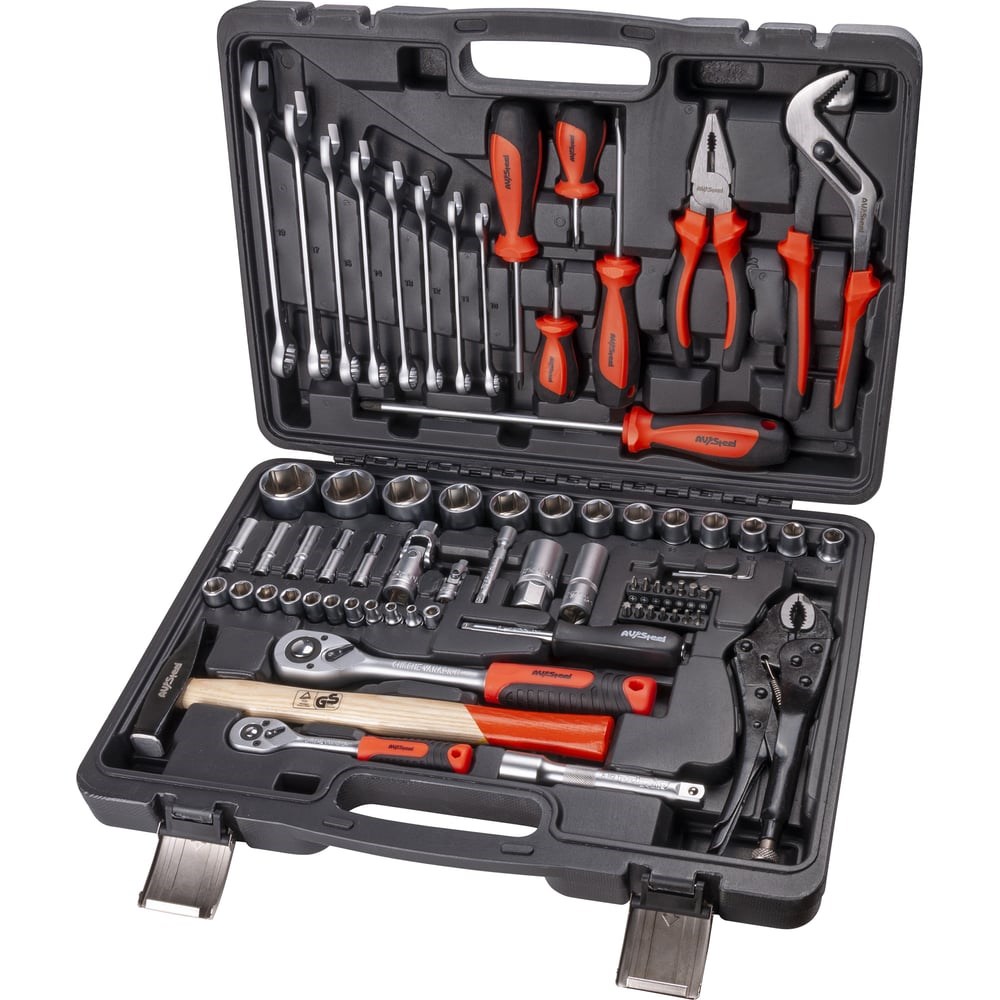 AV Steel Набор инструментов 72 предмета AV-011072 Профессиональный комплект для комплексного монтажа и сервисного обслуживания. Идеальная основа инструментального арсенала мастера. Ключевые преимущества:Полная комплектация - 72 предмета покрывают большинство потребностей в ручном инструментеПрофессиональное качество - хромованадиевая сталь Cr-V с антикоррозийным покрытиемТочная калибровка - предотвращает срыв и деформацию граней крепежаУдобство работы - трещотки с мелким зубом (72 зуба) для работы в стесненных условияхМобильность - двухъярусный кейс обеспечивает порядок и легкую транспортировку Области применения:Автосервис и ремонт автомобилейОбслуживание промышленного оборудованияМонтажные и строительные работыСборка мебели и конструкцийБытовой ремонт