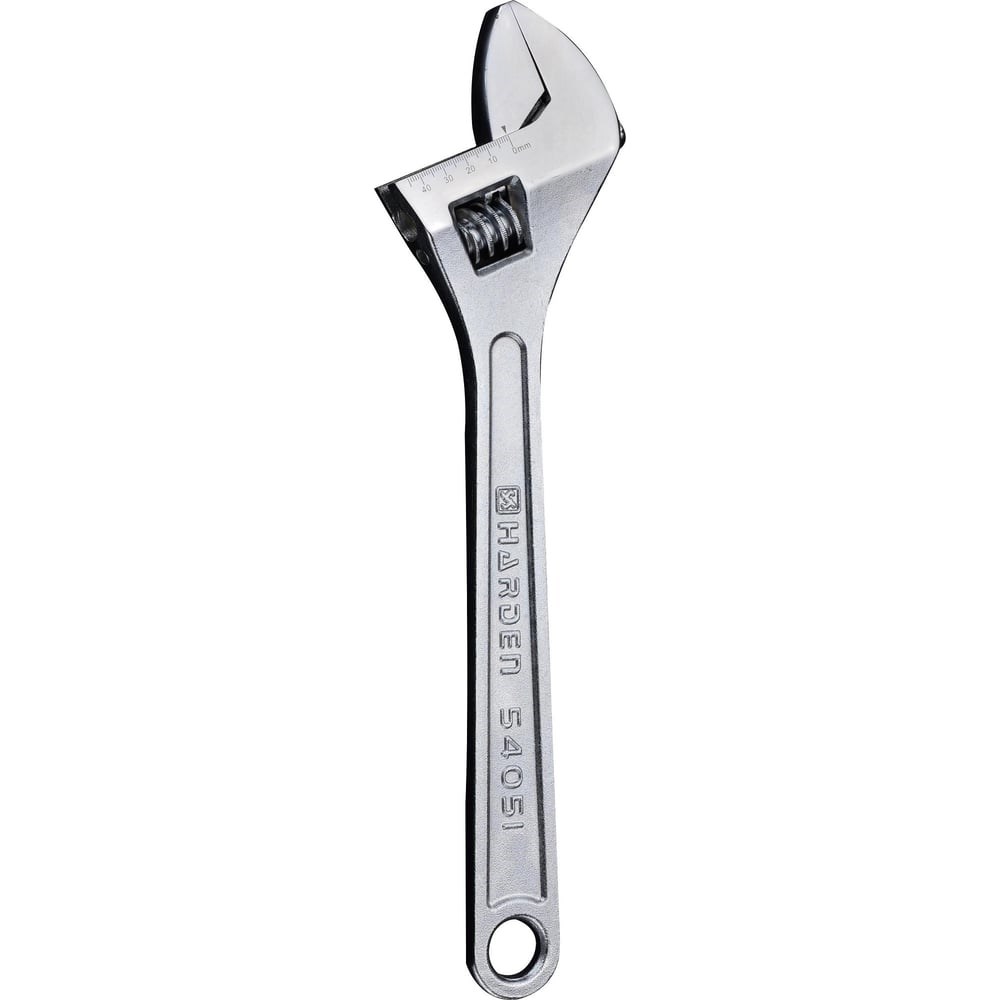 Профессиональный разводной ключ Harden хромированный, 450 мм 540518 используется для различных ремонтных и монтажных работ. Ключ имеет большой интервал раскрытия губок, что позволяет использовать всего один инструмент для работы с широким диапазоном размерности крепежа. Шестигранная форма зева повторяет форму граней крепежных элементов, обеспечивая более крепкий обхват. Увеличенный регулировочный винт позволяет более плавно регулировать нижнюю губку. Широкая рукоятка увеличивает зону обхвата ключа ладонью для удобного применения, а также позволяет прикладывать значительное усилие для быстрого и эффективного монтажа. Хромированное покрытие защищает инструмент от коррозии.