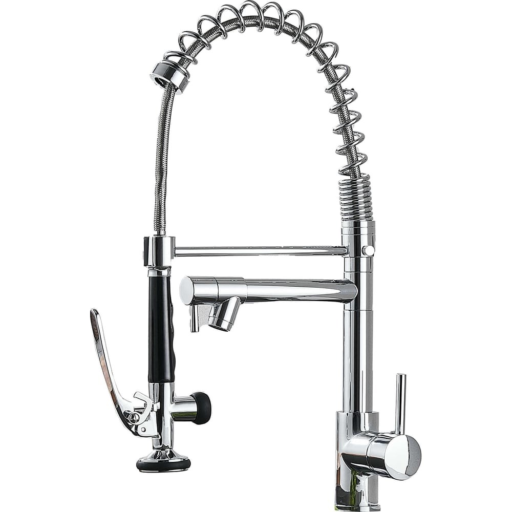 Профессиональный смеситель для кухни и моечной. Смеситель для кухни — это незаменимый элемент кухонного пространства. Этот профессиональный смеситель сочетает в себе функциональность, надежность, ремонтопригодность, производительность и удобство использования. Он станет отличным выбором как для домашнего использования, так и для профессиональных кухонь, общепита. Основные характеристики: Современный технологичный дизайн: выглядит профессионально, чем и является. Высококачественные материалы: корпус, излив и душирующее устройство выполнены из латуни, что обеспечивает долговечность и устойчивость к коррозии. Керамический картридж: для плавного и точного регулирования потока воды, используется стандартный картридж 35 мм для легкой замены. Душевая лейка: смеситель оснащен душевой насадкой для предварительной очистки посуды от остатков пищи перед загрузкой её в посудомоечную машину, а также для мытья овощей и фруктов. Имеет собственный клапан открывания и его фиксацию, легко разбирается для очистки. Имеет прорезиненную вставку для безопасного контакта с посудой. Гибкий излив: Шланг душа подвешен в пружине, что позволяет управлять лейкой и её направлением в широкой амплитуде. Простота установки: смеситель легко монтируется на мойку или столешницы толщинами до 40 мм, а благодаря съемной латунной втулке крепления монтаж подводки будет простым, он будет ещё проще благодаря комплектной гибкой подводке с длинными штуцерами и длиной шлангов по 50 см.