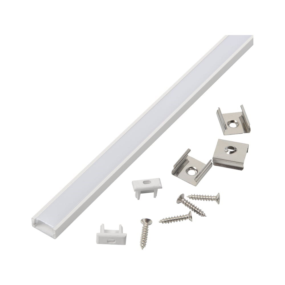 Алюминиевый профиль для светодиодной ленты – это средство для эстетичного оформления видимой светодиодной подсветки, облегчения её монтажа и повышения пожаробезопасности (профиль служит дополнительным теплоотводом). Придаёт светодиодной подсветке завершённый вид, создавая уникальные и неповторимые варианты освещения. Профиль алюминиевый 7*16мм подходит для крепления ленты шириной не более 10 мм. В комплекте 2м профиль, 2м рассеиватель, 2 заглушки, 4 скобы с шурупами. Цвет - белый.
