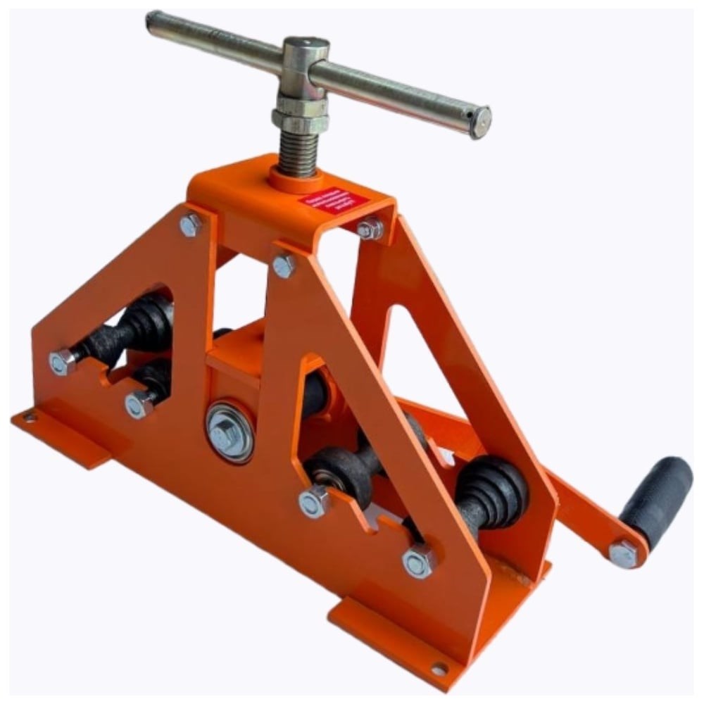 Прокатной профилегиб IMPERA ПРГ-50 - это инструмент для гиба: металлопрофиля с толщиной стенки до 2 мм сечением 15х15 до 50х30 мм; полнотелого прутка сечением до 20х20 мм; полосы шириной до 60 мм, толщиной до 4 мм; круглых труб диаметром до 32 мм (ролики для круглых труб приобретаются отдельно). В комплекте 1 верхний прижимной каленый ролик Ø40мм с насечками и 2 пары нижних каленых роликов Ø50мм под профильную трубу: Комплект роликов №1 имеет канавки под профиль 15, 25, 40, 60, Комплект роликов №2 имеет канавки под профиль 20, 30, 40, 50. Толщина стенок профилегиба - 6 мм. Закалка всех роликов - 40-50 ед. Винт Ø24мм с трапецеидальной резьбой покрыт цинком. Порошковая окраска основных деталей. Удобная перестановка роликов для уменьшения, увеличения радиуса гиба. Есть возможность гиба круглой трубы, для этого необходимо установить специальные ролики - Комплект калёных роликов под КРУГЛУЮ трубу для ПРОФИЛЕГИБОВ ПРГ-40 и ПРГ-50 ПРГ-РК (код товара 30826035) Так же при помощи Биты для дрели БПРГ (код товара 30826029) можно вместо ручного привода использовать тяговую дрель или любой другой силовой привод.