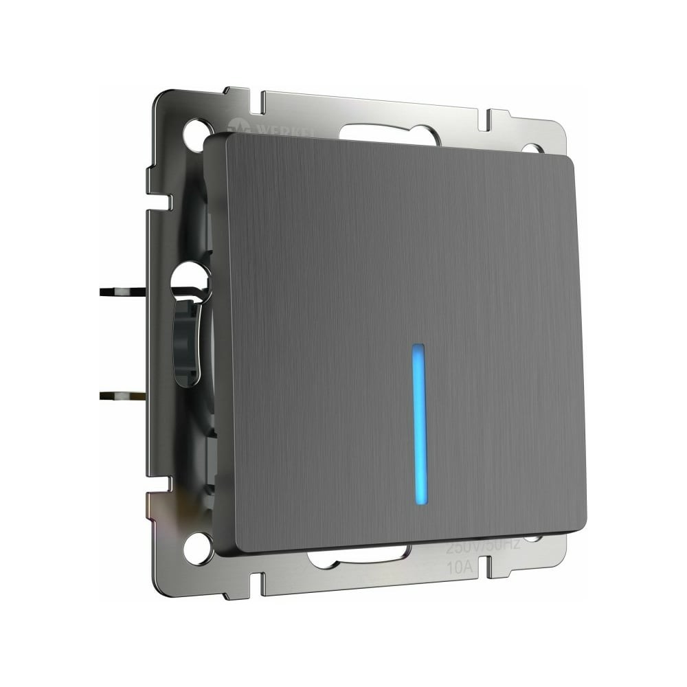 Встраиваемый одноклавишный проходной выключатель с подсветкой Werkel W1112104 графит рифленый IP20 – это важный элемент домашней электросети, служащий для управления светом. Он предназначен для управления одним источником света из нескольких мест.Механизм для скрытой установки оснащен суппортом из нержавеющей стали, что позволяет крепко зафиксировать изделие в подрозетнике. Надежные контакты из фосфористой бронзы и серебра выдерживают большую нагрузку и обладают большим эксплуатационным ресурсом – 40 000 циклов.Накладки выполнены из высококачественного поликарбоната, устойчивого к высоким температурам. Механизм имеет удобный способ подключения проводов с сечением от 0.75 мм кв до 2.5 мм кв.Все встраиваемые механизмы Werkel комбинируются с любыми рамками Werkel. Насчитывается более 1000 комбинаций разного цвета и фактуры, идеально подходящих под любой интерьер. Рамки приобретаются отдельно. Рамки из матового стекла: Senso - 5 цветов, 1 - 4 поста, код a064572 Рамки из стекла: Elite - 5 цветов, 1 - 4 поста, код a057874 Favorit - 10 цветов, 1 - 5 поста, код a051290 Рамки из стекла зеркальные: Diamant - 3 цвета, 1 - 5 поста, код a051017 Рамки из металла: Platinum – 5 цветов, 1 - 4 поста, код a059210 AluMax – 3 цвета, 1 - 4 поста, код a066329 Рамки из металла/акрила: Baguette – 3 цвета, 1 - 4 поста, код a060239 Рамки из поликарбоната: Split – 2 цвета, 1 - 4 поста, код a067251 Slab – 5 цветов, 1 - 5 поста, код a062793