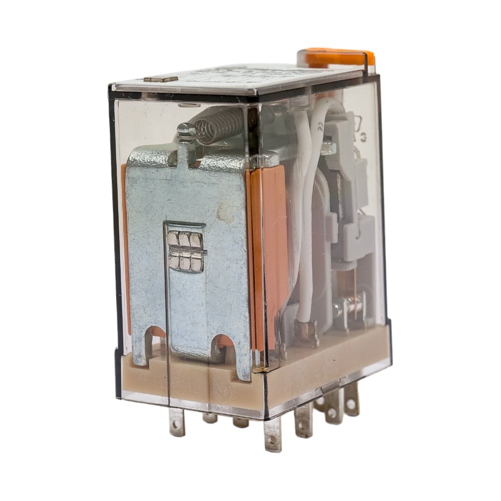 Дополнительные характеристики промежуточного реле Finder 4 перекидных контакта 7А, 24В AC, 553480240040: Номинальное напряжение катушки - 24 В. Монтаж в розетки 94 серии. Кнопка Тест + механический индикатор. Материал контактов AgNi. Время вкл/выкл - 9/5 мс. Фото товара является условным, актуальные данные указаны в технических характеристиках.