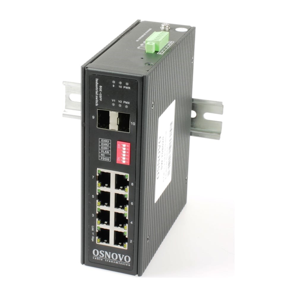 Промышленный коммутатор Gigabit Ethernet на 10 портов. Порты: 8 x GE (10/100/1000Base-T) + 2 x GE SFP (1000Base-X). Поддержка режима CCTV: Увеличение расстояния передачи данных и питания до 250м. Вход для резервного питания. Встроенная грозозащита. Питание DC12-57V(макс. 10W). БП в комплект НЕ входит. Размеры (ШхВхГ): 45x160x130мм. Монтаж на DIN-рейку. Рабочая температура: -40…+80°С.