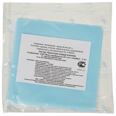 Простыня голубая стерильная 70х140 см, спанбонд 25 г/м2, ГЕКСА