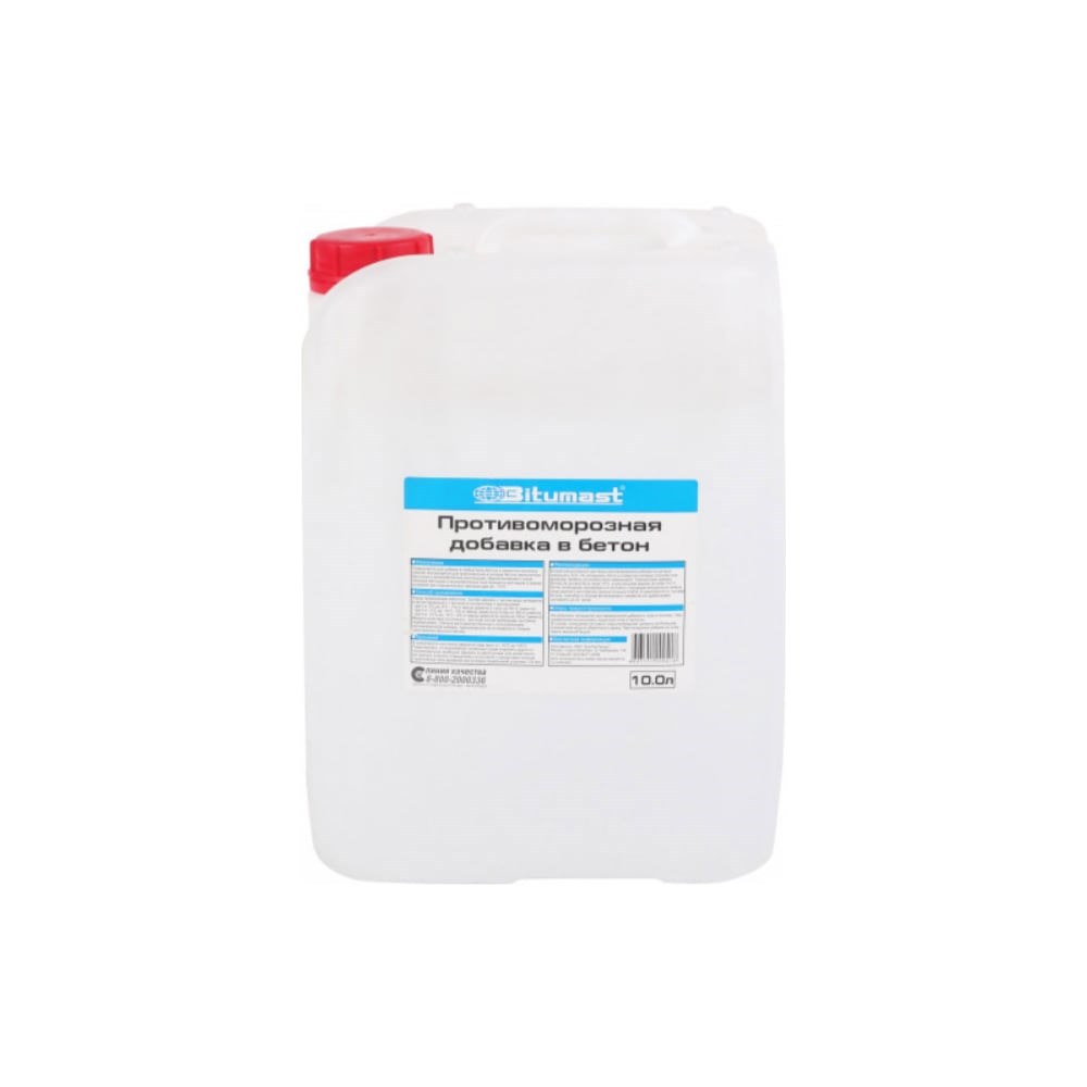 Противоморозная добавка в бетон Bitumast 10 л 4607952901001 обеспечивает отверждение бетона в зимних условиях при отрицательных температурах до -15°С. Применяется для любых видов бетона, обеспечивает быстрый набор прочности, уменьшает количество затворной воды на 10-15% и не образует высолов. Добавляется в бетон при отрицательных температурах: От 0°С до - 5°С – 1% от массы цемента (1 литр на 100 кг цемента) От 0°С до -10°С – 2% от массы цемента (2 литра на 100 кг цемента) От 0°С до -15°С – 4% от массы цемента (4 литра на 100 кг цемента)