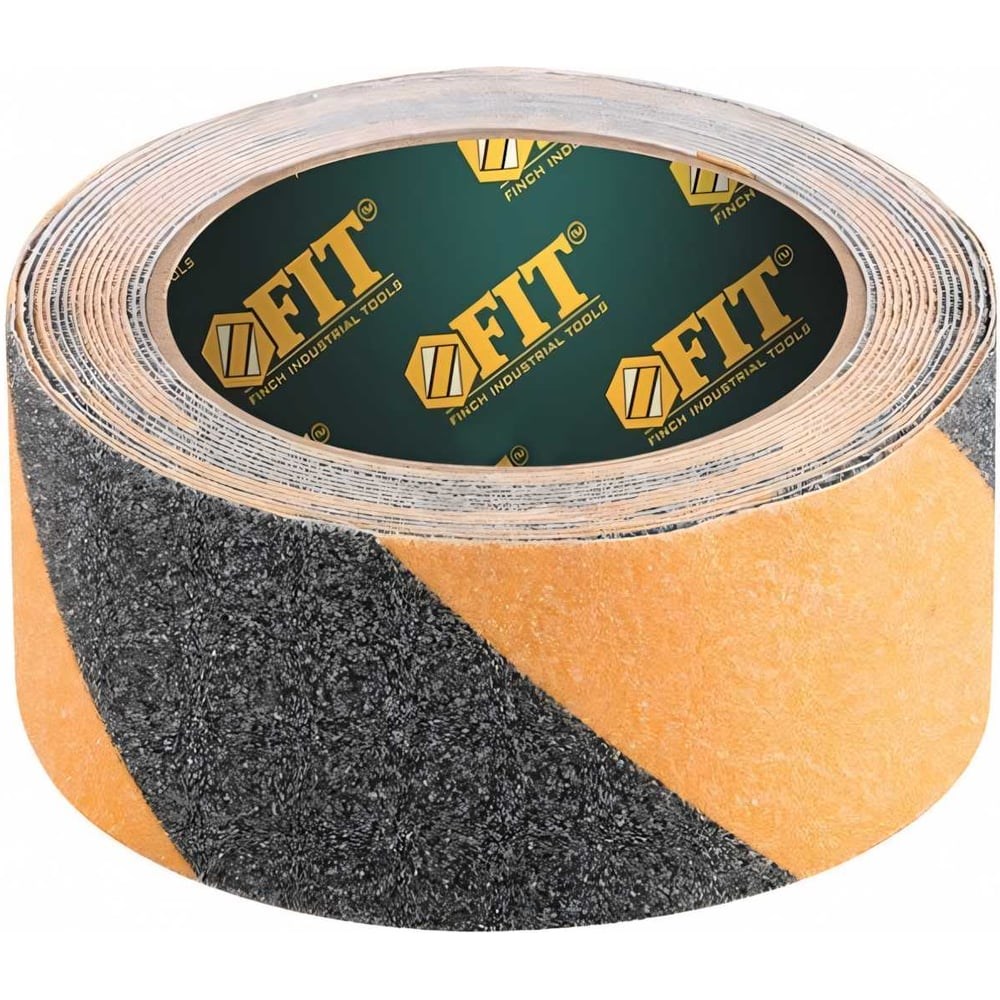 Клейкая противоскользящая лента FIT черно-желтая, 50 мм х 5 м 11971 предназначена для защиты от скольжения на гладких и скользких поверхностях и для обозначения опасных зон. Лента износо- и влагостойкая. Выполнена из ПВХ и оксида алюминия.