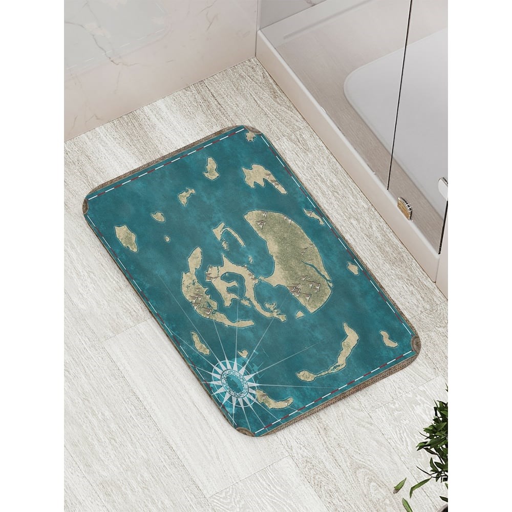 Коврик противоскользящий JoyArty "Пиратская карта" для ванной, сауны, бассейна, bath_18572 - незаменимый аксессуар в ванной комнате, возле бассейна, в сауне или у входа в душевую кабину. Скользкая мокрая плитка может стать причиной серьезных травм: чтобы устранить эту угрозу, достаточно приобрести и положить на поверхность плитки специальный противоскользящий коврик. Мягкий и приятный на ощупь верх коврика для ванной изготовлен из ткани Велсофт - одной из разновидностей микрофибры. Этот материал отлично сохраняет тепло и отличается высокой стойкостью к стиркам и износу. Контактирующая с полом нижняя часть коврика выполнена из особого нетканого материала с эффективным противоскользящим покрытием. Предлагаемый аксессуар рассчитан на эксплуатацию в помещениях с высокой влажностью и способен без каких - либо последствий длительно контактировать с водой.