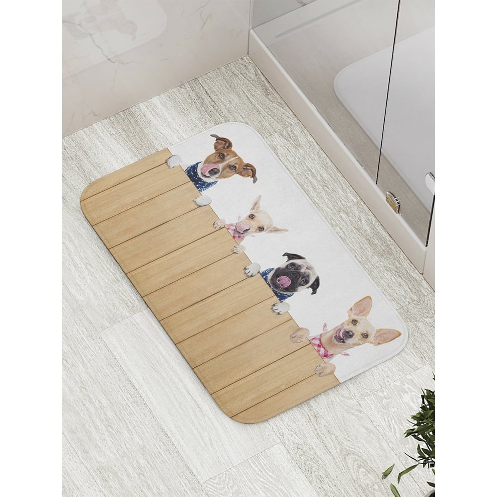 Противоскользящий коврик для ванной, сауны, бассейна JoyArty Подглядывающие собаки