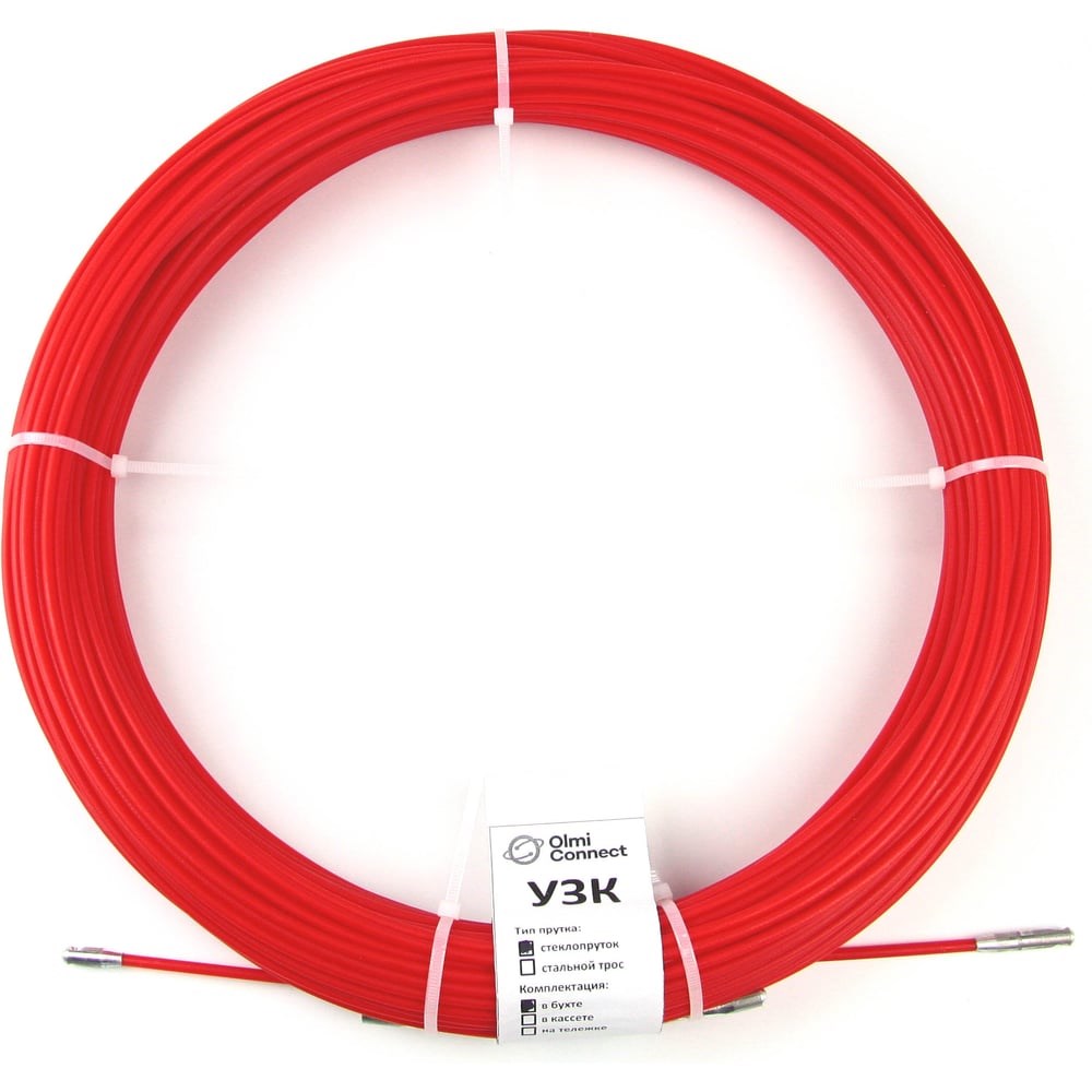 Протяжка для кабеля OlmiOn УЗК, мини, d=3,5 мм, L=130 м, в бухте, красный СП-Б-3,5/130 (устройство для закладки кабеля) в бухте - это самое простое, бюджетное, но при этом качественное и надёжное решение проблемы протяжки кабеля в металлорукава, трубы, короба и каналы при проведении монтажных работ по прокладке проводки для установки видеонаблюдения, систем контроля доступа, домофонов, охранной сигнализации, а также линий связи (интернет, телефон) в офисах, жилых и промышленных помещениях. Устройство представляет собой стеклопластиковый пруток (произведённый в Германии), который снаружи покрыт специальной защитной оболочкой, выполненной из износостойкого полиэтилена высокой плотности. С одной стороны УЗК находится наконечник из латуни, на который в каждом конкретном случае, в зависимости от условий протяжки, можно накрутить жёсткую или гибкую насадку (последняя наиболее удобна для использования в каналах уже наполненных большим количеством кабелей или с высоким числом изгибов), а с другой стороны жёстко закреплён наконечник (также из латуни) для фиксации кабеля, который необходимо протянуть. Насадки в комплекте: тип 1 и 2 (жёсткая и гибкая). Минимальный радиус изгиба: 25-30 мм. Общий диаметр протяжки: 3,5 мм.