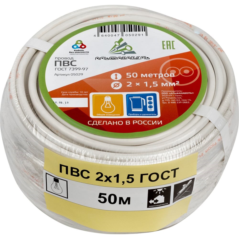 Провод ПВС АЛЬФАКАБЕЛЬ 2х1,5 мм ГОСТ 50 м 05029