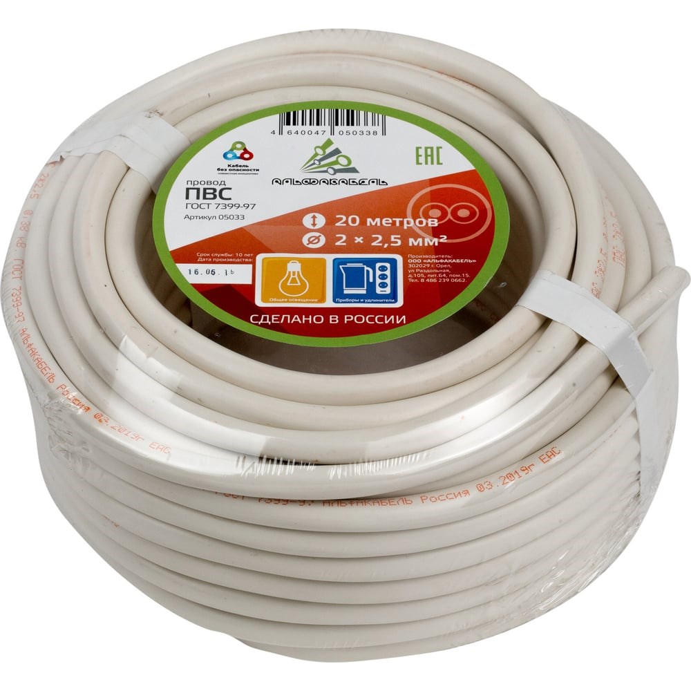 Провод ПВС АЛЬФАКАБЕЛЬ 2х2,5 мм ГОСТ 20 м 05033