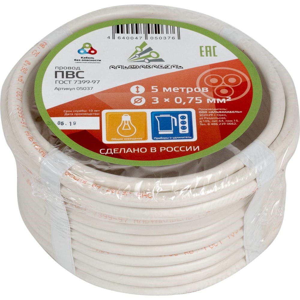 Провод ПВС АЛЬФАКАБЕЛЬ 3х0,75 мм ГОСТ 5 м 05037