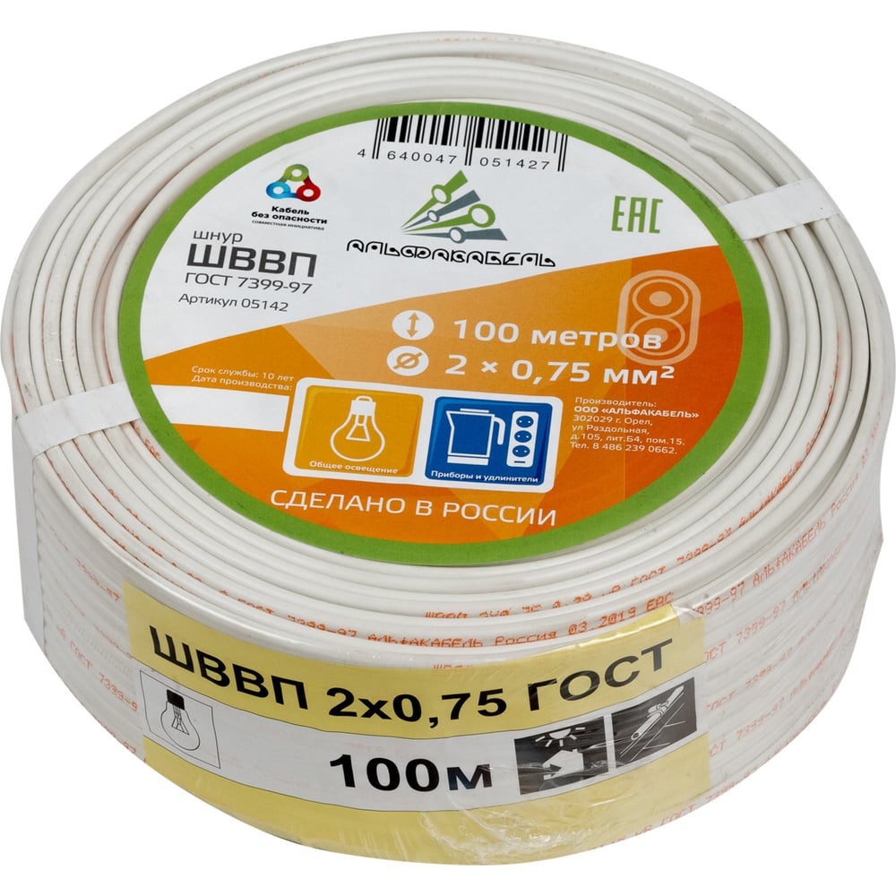 Провод ШВВП АЛЬФАКАБЕЛЬ 2х0,75 мм ГОСТ 100 м 05142