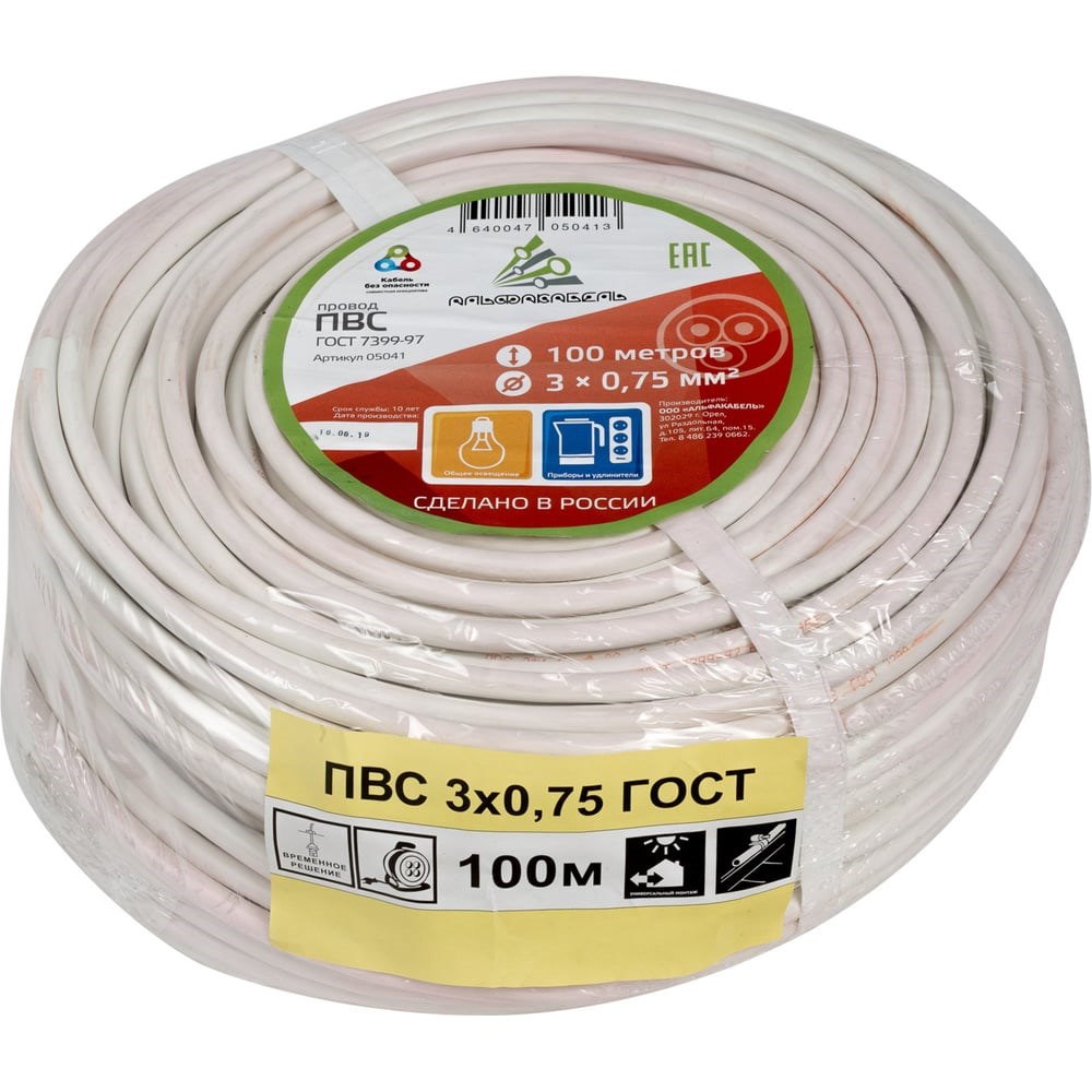 Провод ПВС АЛЬФАКАБЕЛЬ 3х0,75 мм ГОСТ 100 м 05041