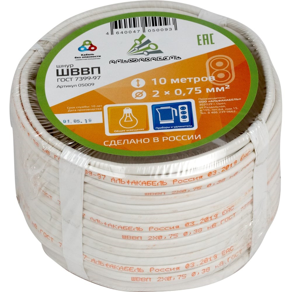 Провод ШВВП АЛЬФАКАБЕЛЬ 2х0,75 мм ГОСТ 10 м 05009