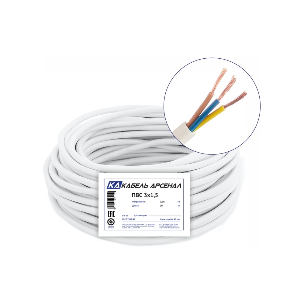 Провод Кабель-Арсенал ПВС 3x1,5 ГОСТ DIY 20 м KARS-54645