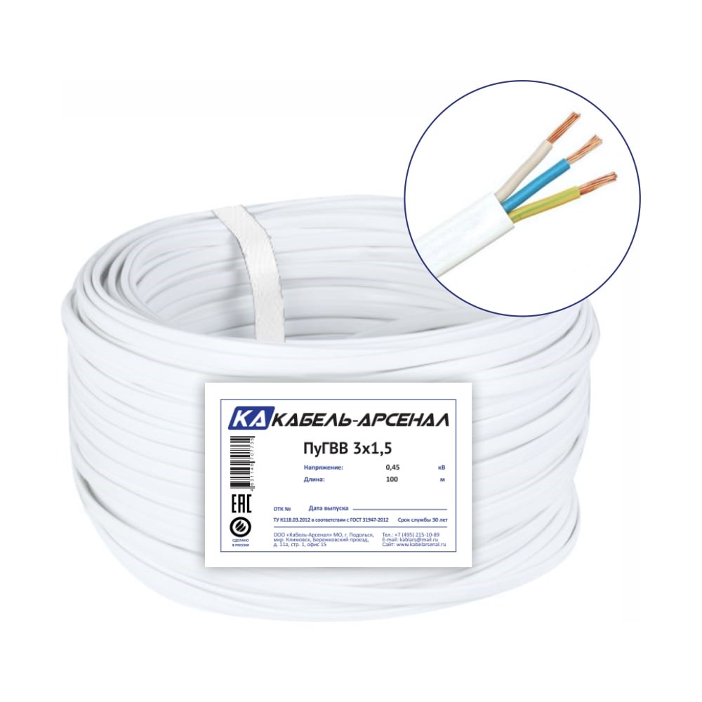 Провод Кабель-Арсенал ПуГВВ 3х1,5 ГОСТ 100 м KARS-40074