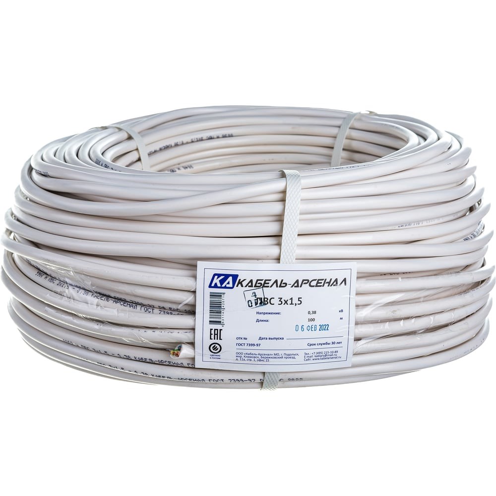 Провод Кабель-Арсенал ПВС 3х1,5 ГОСТ 100 м KARS-51351