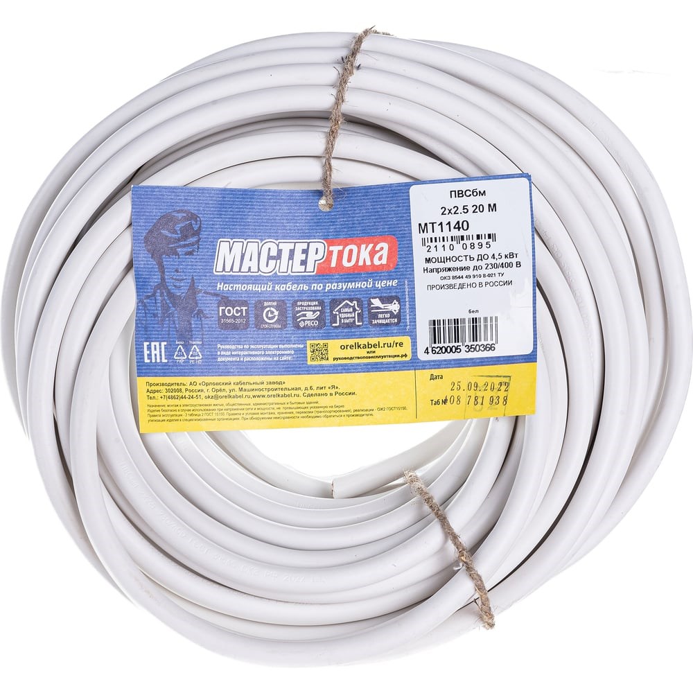 Провод ПВСбм Мастер Тока 2х2.5 белый 20м МТ1140