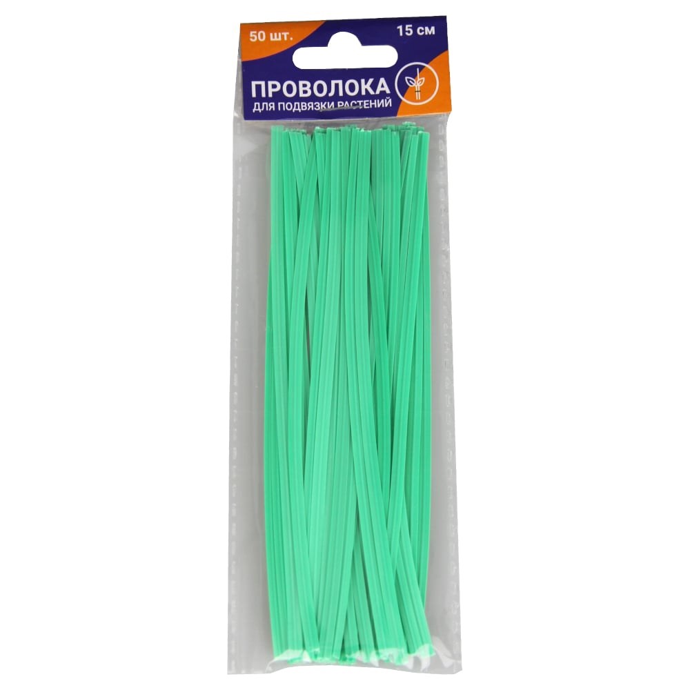 Проволока используется для подвязки и фиксации к опоре различных растений. Выполнена из прочного и гибкого металла в специальной оболочке из пластика. Легко гнётся и не повреждает растения. Подходит как для подвязывания растений, так и для завязывания мешков, пакетов. Длина 15 см, количество 50 шт.