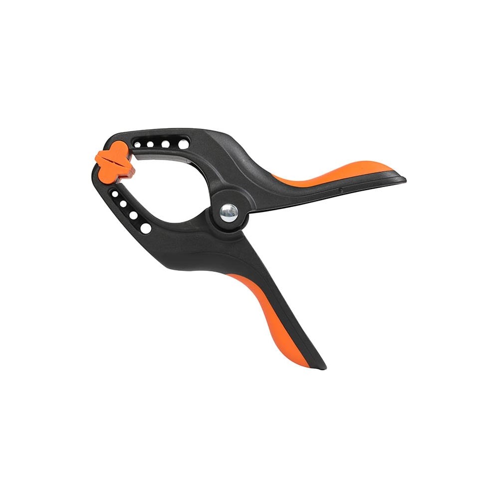 Пружинная струбцина KENDO 6"/165мм 40103 предназначена для быстрой и точной фиксации заготовок при проведении столярных, слесарных, ремонтных работ. Струбцина выполнена из качественного и прочного нейлона. Специальные накладки на губках препятствуют повреждению зажимаемой детали. Рукоятки с накладками из TPR не скользят в руках, обеспечивая комфортную эксплуатацию. Дополнительные характеристики: Глубина зажима: 68 мм; Ширина зажима: 65 мм.